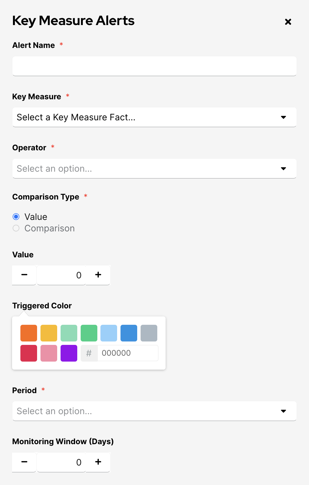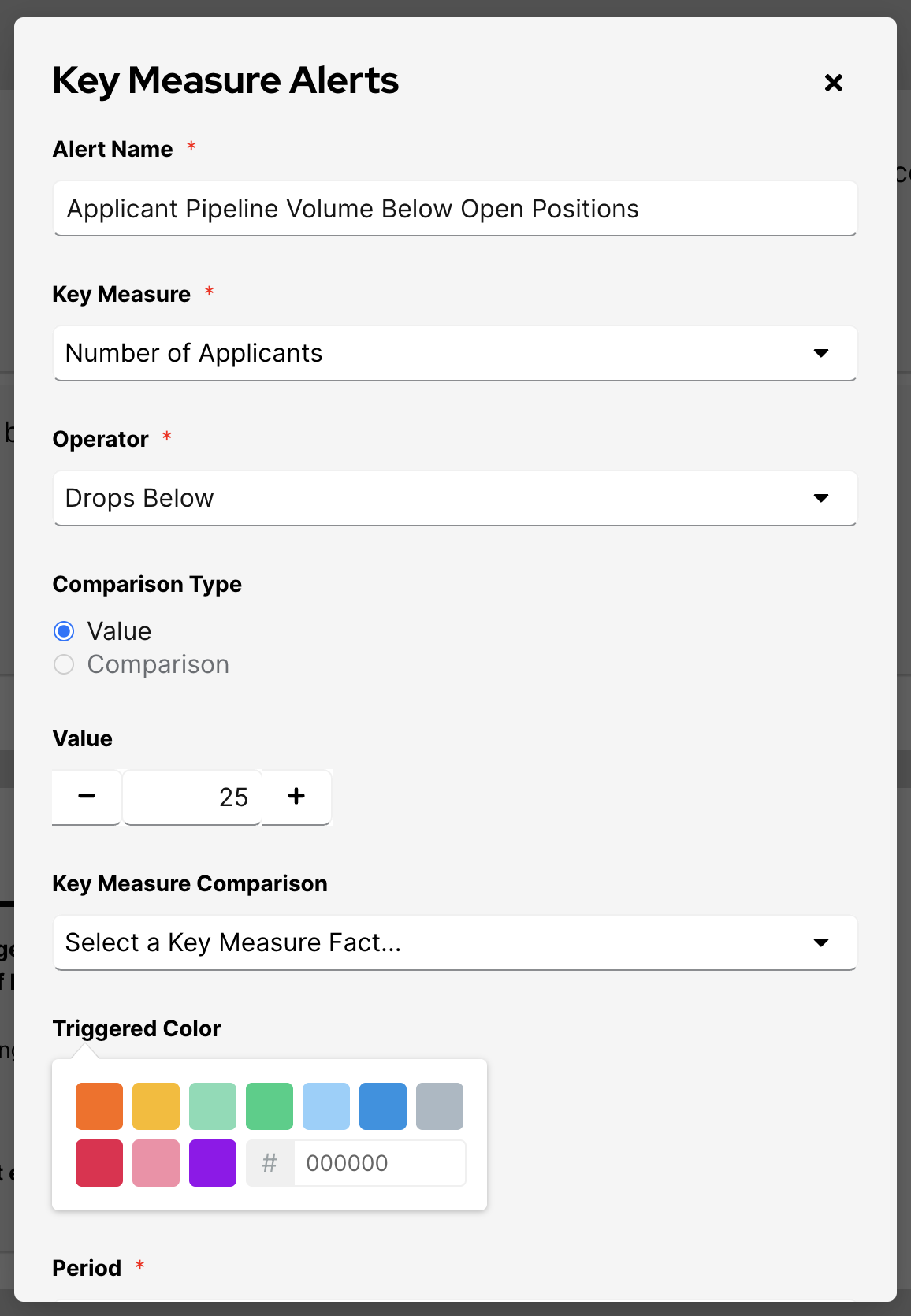 This will open a new window where you can set up the alert based on the key measures used in the chart.