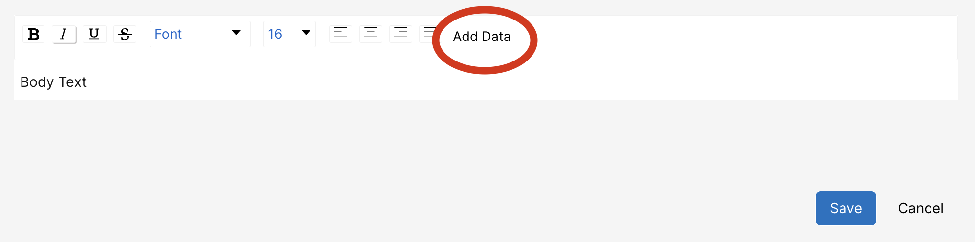 Once added, you can adjust the font, text size, alignment, or even insert dynamic data based on a key measure or dataframe. To do this, open the text editor using the pencil icon, select “Add Data,” and choose the key measure or dataframe. This will insert a code into the text box, displaying the selected data for the relevant time period.