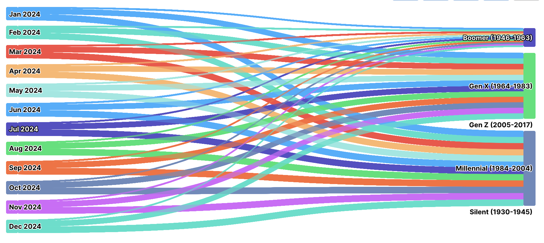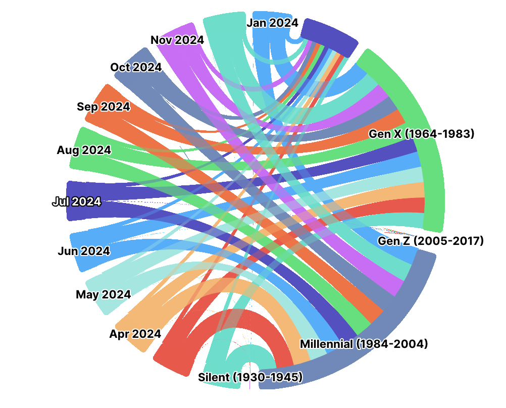 When creating a chart, you can compare key measures or facts against another. To enable multi-series charts, simply drag a field from the left-side menu to add it alongside the key measure or fact.